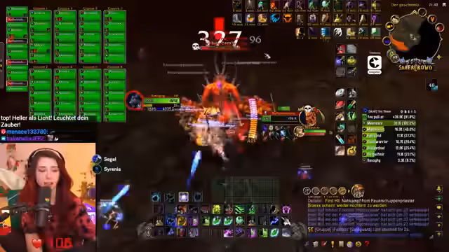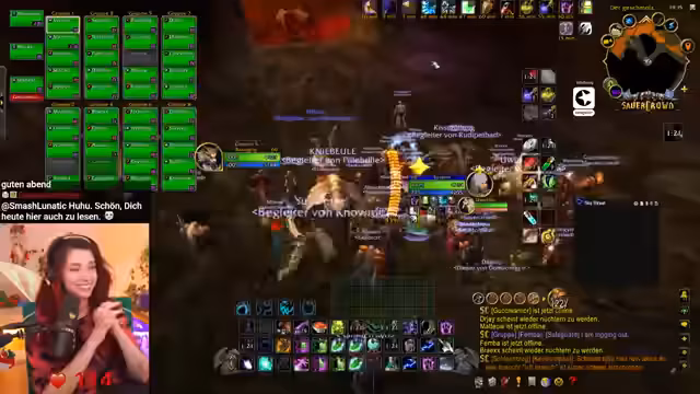 03:02:57Der erste offizielle Pull im Raid beginnt, und der Streamer erlebt den Kampf trotz technischer Hürden mit Engagement. Jedoch kommt es zu erheblichen UI-Problemen: wichtige Addons und Fähigkeiten auf der Leiste verschwinden plötzlich, was den Streamer stark behindert. Trotzdem versucht er, seinen minimalen Fähigkeiten-Satz zu nutzen, während der Raid-Call von anderen Spielern koordiniert wird und der Kampf chaotisch verläuft.