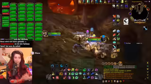 03:30:24Die Gruppe kämpft sich weiter in den Raid vor und steht nun vor den Kernhund-Packs. Der Streamer betont die Wichtigkeit einer koordinierten Aktion, da diese Gegner simultan besiegt werden müssen. Er gibt klare Anweisungen für die Positionierung und warnt vor den respawnenden Wichteln in einer bestimmten Höhle, die eine ständige Gefahr darstellen. Der Streamer fühlt sich durch die große 40er-Personen-Gruppe überfordert und hat Schwierigkeiten, den Überblick zu behalten.