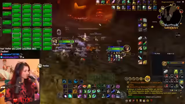 03:20:41Nach intensiver Fehlersuche im Chat und deaktivieren bestimmter Addons (wie Syndikator) stabilisiert sich die technische Situation des Streamers langsam. Die UI kehrt teilweise zurück, und er kann wieder auf seine vollen Fähigkeiten zugreifen. Der Streamer bittet um Verständnis für das Chaos und konzentriert sich nun wieder auf den Fortschritt im Raid, insbesondere auf den anstehenden Kampf gegen den Feuerlord.