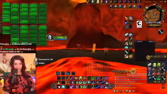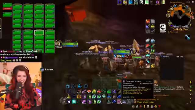 02:33:32Zu Beginn des Streams bereitet sich der Streamer auf den anstehenden Molten-Core-Raid vor. Es werden letzte Anpassungen an Addons wie der Gildenbank vorgenommen und fehlende Gegenstände wie Petri-Flasks verteilt. Gleichzeitig treten erste technische Probleme auf: Der Streamer erleidet einen vorläufigen Crash beim ersten Versuch, dem Raid beizutreten. Die Gruppe muss auf Ersatz warten, und es herrscht eine Aufregung über den Start des Raids, da der Streamer seine Rolle als Druide noch nie im Molten-Core ausgeübt hat.