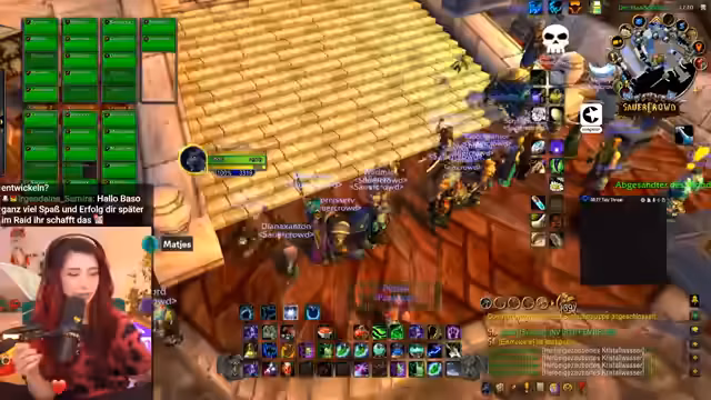 00:48:57Vor dem offiziellen Start um 18 Uhr werden letzte technische und spielmechanische Fragen an Sirenia, eine erfahrene Spielerin, geklärt. Es geht um konkrete Boss-Strategien: Beim ersten Boss soll dieStreamerin im Hintergrund stehen, um zu heilen und zu dispeln. Bei der Bombe des Baron Geddon soll sie in Bär-Form wechseln und zu den vorgegebenen Positionen laufen. Auch für andere Mechaniken wie die Teleportation in die Lava-Pit bei Magmadar werden klare Verhaltensregeln besprochen, um ihre Überlebenschancen zu maximieren.