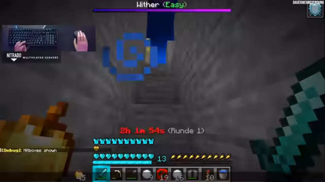 02:37:18Das XXL Randomizer Wither Battle beginnt offiziell. Nach dem Start der Ausrüstungsphase machen sich die Teilnehmer daran, in ihren jeweiligen Welten so starke Ausrüstung wie möglich zu farmen. Der Streamer äußert seine Hoffnung auf übermächtige Gegenstände wie OP-Gap, Totems und Netherite-Rüstung, während die Stimmung unter den Teilnehmern und im Chat angespannt und gespannt auf den Beginn der Kämpfe ist.