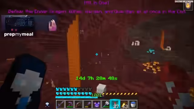 03:12:22Der Streamer konzentriert sich nun vollends auf den Bau einer vorgesehenen Barriere-Falle, um den Wither effizient bekämpfen zu können. Diese Konstruktion ist komplex und benötigt präzise Anordnung der unsichtbaren Blöcke, um den Wither in einen bestimmten Bereich zu locken und am Fliehen zu hindern. Parallel dazu wird die gesammelte Rüstung weiter aufgewertet, indem Diamanten-Items gegen Netherite-Rüstung getauscht werden. Das Inventar wird bestückt, um für den Kampf gerüstet zu sein. Die Zeit drängt, und der Druck wächst, da das finale Setup noch nicht fehlerfrei funktioniert.
