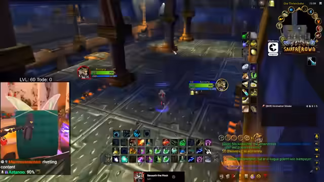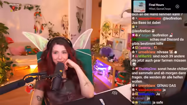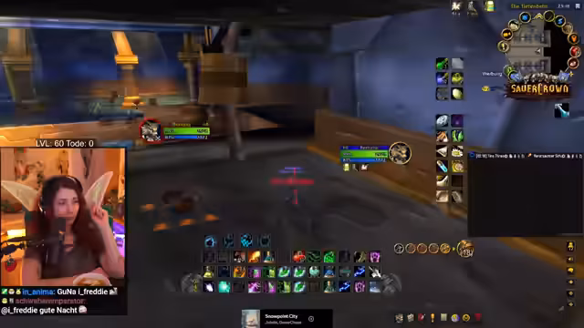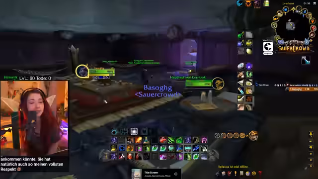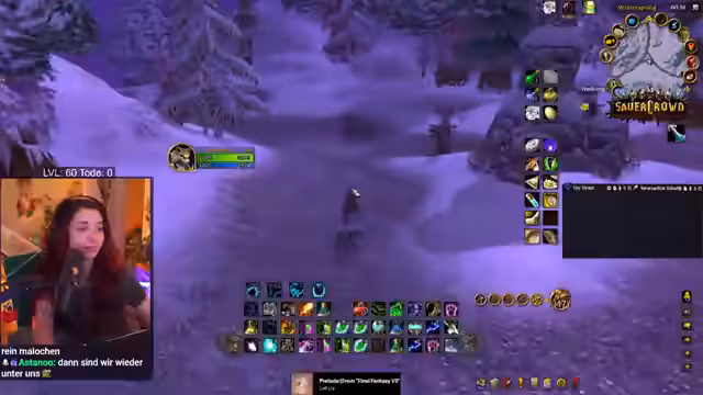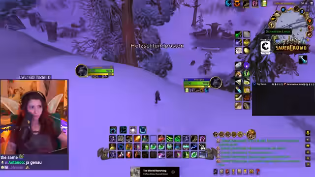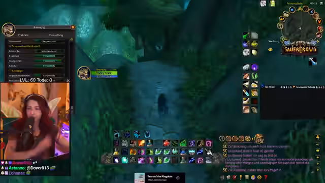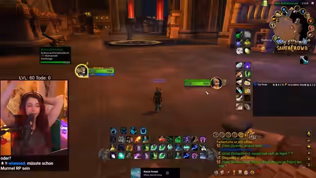 05:52:47Nachdem er den Bergsilber-Weißling farmt, stößt der Streamer auf das Problem der Layer in World of Warcraft. Er ist auf demselben Layer wie andere Spieler, was das Farmen erschwert, da sich die Spawnpunkte gegenseitig blockieren. Er versucht, andere Spieler wie Sirenia per Nachricht zu kontaktieren, um Layern zu wechseln, und bittet sie um Kräuter, was zu einer Mischung aus Verärgerung und Roleplay-Einlagen führt, in denen er sich als bedürftige 'Geierin' bezeichnet.