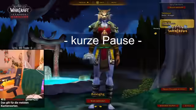 03:15:56Nachdem das Ziel des Erreichens von Level 60 in World of Warcraft nach zwei Monaten intensivem Grinden endlich erreicht wurde, beschreibt der Streamer eine große Erleichterung. Diese ist jedoch begleitet von einem emotionalen Absturz, da der monatelange Stress und der Zeitdruck plötzlich wegfallen. Die Erleichterung ist auch dem Umstand geschuldet, dass der Charakter nicht gestorben ist, was die gesamte Leistung noch bedeutsamer macht.