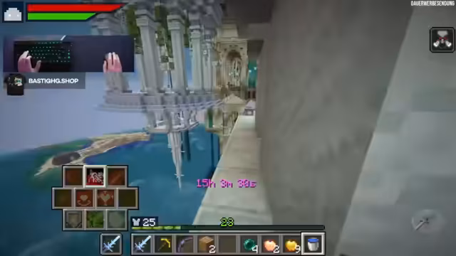00:22:57Der Streamer stellt einen neuen, riesigen Dungeon vor, der stark wassergeprägt ist und mit starken Monstern wie einem Oktopus mit Tridenten kämpfen lässt. Nach mehreren Versuchen und der Nutzung spezieller Items wie 'Versteinern' wird ein starker Boss besiegt, der hochwertige Belohnungen wie verzauberte Diamantrüstung, spezielle Waffen und den 'Ceraunus' (eine Waffe mit erhöhter Reichweite) droppt.