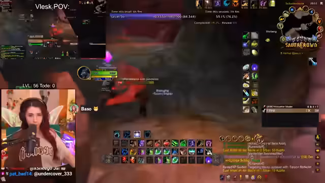 04:44:00Gelöst vom Raid-Druck, spielt die Streaminer nun deutlich entspannter weiter. Sie lädt den Chat ein, sich nicht entmutigen zu lassen, und vibt stattdessen mit alter Musik. Sie unterhält sich mit den Viewern über ihr Gameplay, pullt Mobs und führt Quests aus, ohne sich unter Druck zu setzen. Ihr Fokus liegt nun auf dem reinen Vergnügen am Spielen und dem Sammeln von XP, anstatt auf einem perfekten Ergebnis. Sie nutzt einen kritischen Buff, um einen Boss zu besiegen, und ist von den hohen Schadenszahlen beeindruckt.