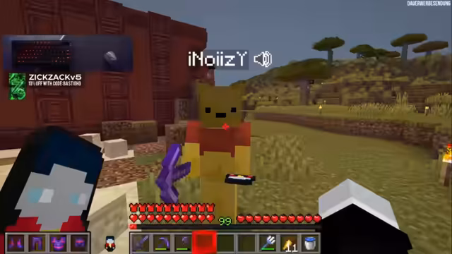 11:31:04Hugo beschließt, eine eigene Untergrund-Basis zu bauen und bittet um Hilfe, um einen Keller auszuheben. Die anderen Spieler unterstützen ihn dabei, wobei humorvolle Kommentare über die Wahl des Baumaterials und die Effizienz der Arbeit fallen. Besonders die Verwendung von 'pinkem Holz', das schwer zu farmen ist, sorgt für Belustigung. Während des Baus kommt es zu zahlreichen Missgeschicken und Neckereien, insbesondere als Hugo seine Spitzhacke verliert und seine Items verstreut werden. Die anderen Spieler nutzen die Gelegenheit, ihn zu ärgern, indem sie seine Items verstecken oder ihn in Fallen locken. Die Situation eskaliert humorvoll, als Hugo versucht, seine verlorenen Gegenstände zurückzuholen, während die anderen Spieler ihm Steine in den Weg legen und seine Versuche vereiteln. Die Szene ist geprägt von freundschaftlichem Spott und Chaos, das typisch für gemeinsame Minecraft-Sessions ist.