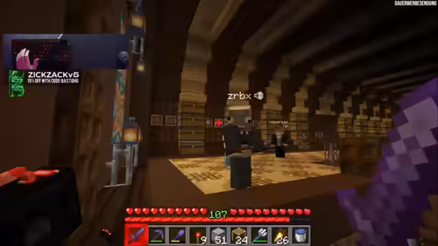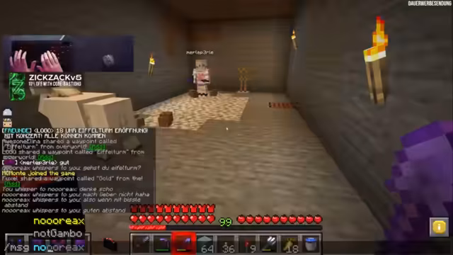 10:24:04Es wird nach dem Fortschritt auf der Karte gefragt und der Wunsch geäußert, nochmal "Deal or No Deal" zu spielen. Ein Tool zeigt an, dass Steuern hinterzogen wurden, was humorvoll kommentiert wird. Die Frage, warum kein TNT verwendet wird, wird mit dem geringen Sprengradius bei Stein beantwortet. Es wird über die am meisten abgebauten Steine gesprochen, wobei Basti mit 65.000 Steinen führt. Die Verwendung von Bundles wird diskutiert, wobei deren Nützlichkeit für das Sammeln vieler verstreuter Gegenstände und Redstone-Blöcke hervorgehoben wird. Stegis Monopoly-Feld und frühere Bauwerke wie die "Kwüste" und der "Baumsturm von Feister" werden erwähnt.