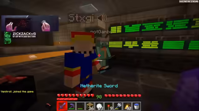 08:32:51Der Stream wird durch ein massives Lag-Problem beeinträchtigt, das durch Hugo verursacht wird, der Tausende von Booten für eine Charity-Aktion platziert hat. Dies führt zu erheblichen Performance-Einbrüchen und Chaos auf dem Server, was die Spieler humorvoll kommentieren. Später trifft Basti auf Klim, der ihm ein 'höchst illegales' und 'seltenstes Item' auf dem Server anbietet. Klim erklärt, dass er es auf nicht ganz legale Weise erworben hat und es nun loswerden möchte. Nach einer kurzen Demonstration des Sicherheitssystems von Bastis Container wird das Item enthüllt: Es handelt sich um ein unsichtbares Element, das nicht jeder sofort erkennen kann, aber als das seltenste und wertvollste Item auf dem gesamten Server beschrieben wird, dessen Wert über den Freitag hinausgeht.