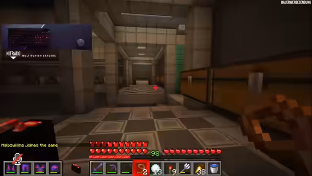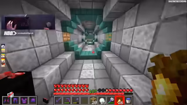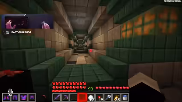 09:09:01Nach der Führung durch das geheime Hauptquartier kommt es zur Übergabe eines hochbrisanten, illegalen Items: einer Ender-Chessor. Dieses Item ist auf dem Server unter normalen Umständen nicht erhältlich, da es End-Rods nur in End-Cities gibt und das End noch nicht offen ist. Die Übergabe findet in einem speziellen Raum statt, der gleichzeitig als Ausgang dient. Der Besucher wird vor die Herausforderung gestellt, einen einzigen Knopf zu finden, der ihn nach draußen bringt. Sollte er scheitern, müsste er für immer im Hauptquartier bleiben. Glücklicherweise wird ihm aufgrund des Geschenks eine Ausnahme gewährt, und er findet den Ausgang. Die Szene endet mit der scheinbaren Amnesie des Besuchers, der sich an nichts mehr erinnern kann, was die Wirksamkeit der Geheimhaltung unterstreicht und die mysteriöse Atmosphäre des Hauptquartiers bewahrt.