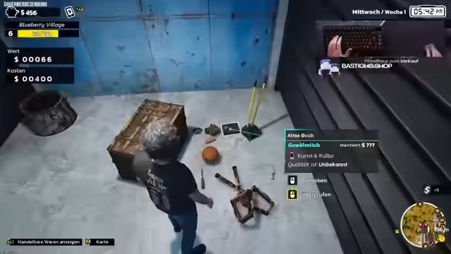 05:42:08Nach dem Kauf und dem Upgrade des Reparaturwerkzeits werden letzte, lukrative Geschäfte getätigt, wie der Verkauf eines Silberarmreifs für 226 Dollar. Anschließend wird das gesamte Inventar verkauft, um das Spiel erfolgreich abzuschließen. Mit einer stetigen Cashflow-Problematik und dem Verlust fast aller Gegenstände, um Transportkosten zu sparen, endet der Stream nach über sechs Stunden mit dem Speichern des Spiels und einem abschließenden Dank an das Publikum.