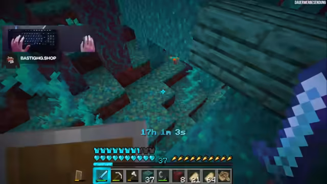 00:09:16Der Stream beginnt als Early-Stream, nachdem der Kanalbastighg dies am Vortag angekündigt hatte. Der Streamer begrüßt seine Zuschauer und berichtet, dass die gestrebte Challenge besteht darin, bei jedem gelaufenen Block einen Herzschaden zu erleiden. Der wichtigste Erfolg der bisherigen Spielzeit ist der Bau einer Hoglin-Farm, die sehr effektiv funktioniert und eine große Menge Cooked Pork Chop geliefert hat, die für die restliche Challenge essenziell ist.