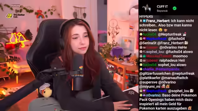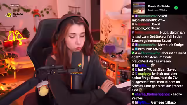 04:04:36Die Streamerin spricht über das Aussortieren ihres Kleiderschranks und das schlechte Gewissen beim Kauf neuer Kleidungsstücke angesichts der bereits vorhandenen Menge. Sie erklärt, dass sie zu faul ist, um die aussortierten Sachen zu verkaufen und sie stattdessen spendet. Anschließend wechselt das Thema zu Luni, der Katze, und ihrem neuesten Lieblingsspielzeug: Ohrenstäbchen. Sie betont, dass Luni teures Katzenspielzeug ignoriert und stattdessen unbenutzte Ohrenstäbchen bevorzugt, mit denen sie auf dem Boden spielt. Die Streamerin amüsiert sich über Lunis Verhalten und zeigt dem Chat, wie die Katze mit den Ohrenstäbchen spielt. Sie erwähnt, dass Luni diese Leidenschaft erst seit kurzem entdeckt hat. Es wird überlegt, ob Luni sich im Stream für ihr Spielzeug schämt, aber ihre Zuneigung wird bestätigt. Die Streamerin freut sich über die einfachen Freuden, die Luni genießt, und betont, dass es ihr gute Laune bereitet, die Katze so verspielt zu sehen. Abschließend wird festgestellt, dass Ohrenstäbchen das beste Katzenspielzeug sind.