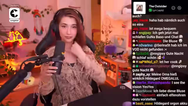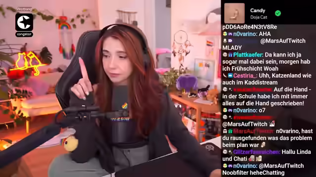 01:06:40Es wird über die visuelle Gestaltung des Streams gesprochen, wobei die unterschiedlichen Farbgebungen der Hintergründe der einzelnen Teilnehmer – orange, lila und dunkelgrün – thematisiert werden. Es wird festgestellt, dass jeder Teilnehmer dadurch in seinem eigenen Bereich zu sein scheint. Es wird die eigene Unzufriedenheit mit dem eigenen Setup angesprochen, das Gefühl, dass es nicht perfekt ist und der Wunsch, es wie bei anderen Streamern zu gestalten. Es wird überlegt, das eigene Regal umzustellen und Lichterketten anzubringen. Das Setup von Tim wird als gelungen hervorgehoben, da es nicht zu vollgestellt wirkt, aber durch eine Lichterkette eine besondere Note erhält. Lillys Hintergrund wird zunächst für einen Spiegel gehalten, dann aber als Fototapete identifiziert, die ein Fenster nach New York darstellt. Es wird kurz überlegt, einen gemeinsamen Stream zu machen. Die korrekte Anwendung von Make-up wird angesprochen, wobei Bezug auf die Polaris genommen wird. Es wird überlegt, Anime-Augen zu schminken. Es wird der Chat begrüßt und darauf hingewiesen, dass dieser nichts von den vorangegangenen Gesprächen gehört hat.