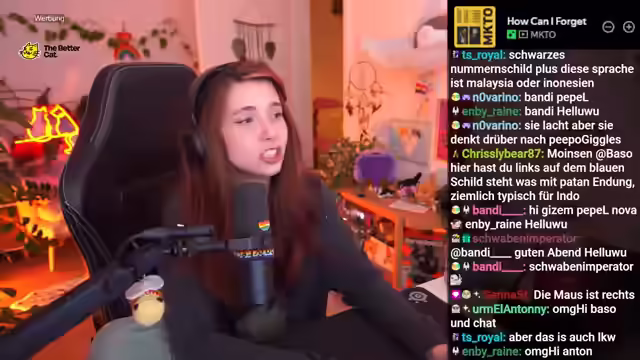 04:31:59Die Streamerin plant, GeoGuessr zu üben und wiederholt ihr Wissen über Linksverkehr in verschiedenen Ländern, darunter Großbritannien, Australien, Neuseeland, Indien, Japan, Thailand, Namibia und Südafrika. Sie überlegt, wie sie sich diese Informationen am besten bis Freitag merken kann und entscheidet sich, die Standard-Linksverkehr-Länder zu verinnerlichen. Anschließend beginnt sie eine Runde GeoGuessr und landet in einem Gebiet mit europäischen Autokennzeichen, ist aber unsicher, wo genau sie sich befindet. Sie vermutet, dass es sich um eine Insel handeln könnte. In einer anderen Runde landet sie in einer tropisch-asiatisch aussehenden Gegend und entdeckt den Hinweis 'Indonesien'. Später befindet sie sich in einer skandinavisch anmutenden Umgebung mit Birken und flachem Land und entdeckt Hinweise auf Kopenhagen und Lingeby. Sie erhält Tipps aus dem Chat, wie man Korea anhand der Strompfosten erkennen kann, die diagonale, gelb-schwarze Bemalungen haben. Sie versucht, sich diese Eselsbrücke zu merken, um in Zukunft Japan und Korea besser unterscheiden zu können: Korea hat eine kleine Biene, Taiwan eine ganze Hummel.