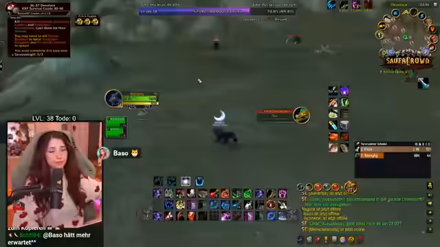 01:52:10Nach dem Dungeon wechseln die Spieler ins Gebiet Desolace, um eine bestimmte Quest zu erledigen. Die Suche nach den benötigen Quest-Items gestaltet sich jedoch nervig und zeitaufwendig, da die Mobs die Gegenstände selten droppen und die Gruppe von anderen Spielern gestört wird. Der Streamer zeigt sich frustriert über die fehlenden Drops und die ineffiziente Jagd auf die Mobs. Währenddessen entwickelt sich ein gemeinsamer Chat mit den Viewern.