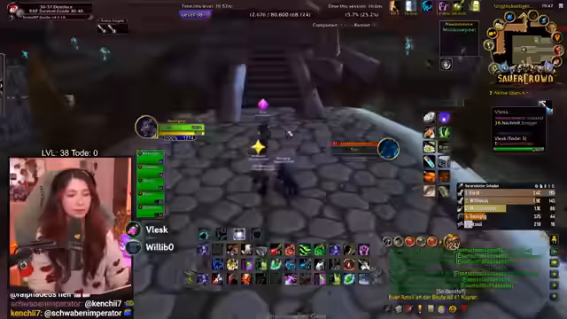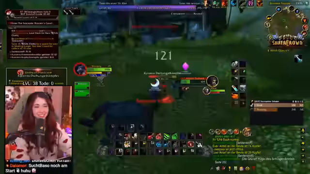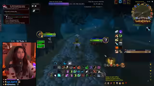 04:19:37Der Streamer arbeitet konsequent an seinen Quests, indem er Mobs und Eliten im Schlingendorntal tötet. Er ist auf der Suche nach spezifischen Drops, wie der Gerommelten für Quests und anderen Materialien wie Trollschweiß oder Blättern. Dabei koordiniert er sich mit seinem Mitspieler, der als Tank agiert. Währenddessen entwickelt sein Charakter sich weiter: Er erreicht Level 39, kann 'Dual Spec' freischalten und plant seinen Mount-Kauf, sobald Level 40 erreicht ist. Er blickt auch auf den Gesamtfortschritt zurück und erwähnt den Start bei Level 7 und den jetzigen Stand bei Level 39,5.