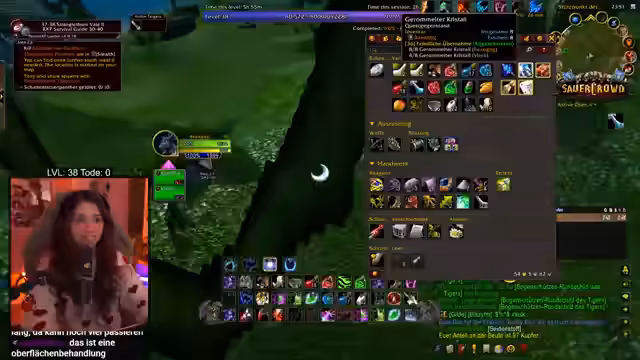 04:11:26Der Streamer beginnt mit der spielerischen Interaktion, indem er sich heilt und getränke zu sich nimmt. Er interagiert mit seinem Gegenstandsinventar, nimmt neue Pläne für die Schmiedekunst entgegen und handelt über den Verkauf oder die Beibehaltung von Gegenständen wie Goldrindenäpfeln. Er identifiziert und benötigt spezifische Items wie 'Gerommelter Kristall', die er im Spiel sucht und durch das Töten von Monstern wie dem Shadowmoor Panther lootet. Neben dem Loot konzentriert er sich auf das Erreichen von Level-Meilensteinen wie Level 39 und dem nahen Erreichen von Level 40, was den Mount freischaltet.