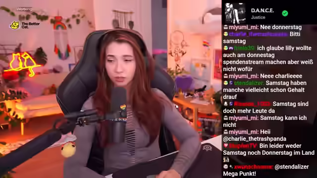 00:12:28Es wird über den Zustand des Stuhls gesprochen, der langsam auseinanderfällt. Der Kauf von schwarzem Klebeband zur Reparatur wird thematisiert, wobei die hohen Preise im lokalen Schreibwarenladen im Vergleich zu Online-Angeboten diskutiert werden. Es wird humorvoll überlegt, den Stuhl absichtlich im Stream auseinanderbrechen zu lassen, um einen "Fail"-Clip für die Stream Awards zu generieren. Die Entscheidung, das Klebeband doch online zu bestellen, wird mit dem inneren Konflikt zwischen dem Wunsch nach Nachhaltigkeit und dem Sparen begründet. Abschweifend wird der Kater Ferox erwähnt, der auf der Couch liegt und gefüttert wurde. Abschließend wird festgestellt, dass es ein guter Clip wäre, wenn der Stuhl im Stream kaputt geht und ein Wettbewerb daraus gemacht wird.