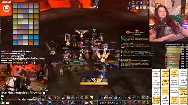 10:42:59Während der Streamerin alleine ein seltenes Item farmt, werden die Aufregung und die spannungsgeladene Situation thematisiert. Gleichzeitig werden letzte Details für den nächsten Raid geklärt. Die spezifischen Aufgaben der einzelnen Spieler, wie die Unterstützung der Hexer beim Banishing von Mobs, werden besprochen und verinnerlicht. Der Fokus liegt auf der klaren Rolle jedes Einzelnen, um den Raid erfolgreich und ohne größere Probleme zu gestalten.