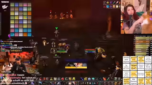 01:50:12Der Fokus liegt auf der Bewältigung des Bosses Luzifron. Die Taktik verlangt, dass Adds zeitgleich getötet werden, um einen Endless Fight zu verhindern. Spieler müssen auf einen Mind Control Debuff achten, der sofort von Priestern entfernt werden muss. Zudem werden Regenerationstränke vor dem Pull konsumiert, um sich auf die Cursen vorzubereiten. Der Streamer lobt die professionische Vorbereitung des Teams, die viel Zeit in die Besprechung investiert. Nach dem Sieg droppt ein für Droiden relevantes Item, was der Streamer als 'Karma' bezeichnet, da nur einer der Klasse mitgenommen wurde.