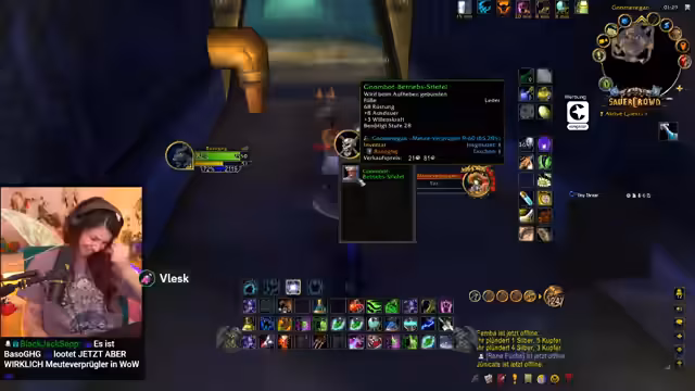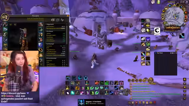 06:33:57Im Discord sucht der Streamer nach Laranas, um mit ihm über möliche Verbesserungen für seine Ausrüstung zu sprechen. Mit Hilfe von Mauki geht er durch seine Ausrüstung und identifiziert potenzielle Upgrades, die sie im Auktionshaus oder in der Gildenbank beschaffen können. Besonders wichtig sind Gegenstände, die mehr Treffsicherheit (Hit) bieten, da er diese stat derzeitig nicht im Cap hat.