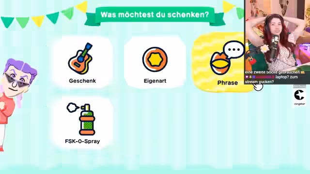 05:24:05Der Streamer erkundet das Wunschzentrum, wo er verschiedene Sets wie Einzugs-, Plüschzimmere- und Geburtstagsfeiersets entdeckt und erste Erfahrungen mit der Item-Verwaltung im Spiel sammelt. Er entscheidet sich für spezielle Geschenke für seine Charaktere, wird dabei aber auch mit unerwarteten Herausforderungen konfrontiert wie der unliebsamen Stinke Socke, die er als Geschenk erhält und nicht versteht. Er zeigt, wie Items im Spiel verwaltet und genutzt werden können.