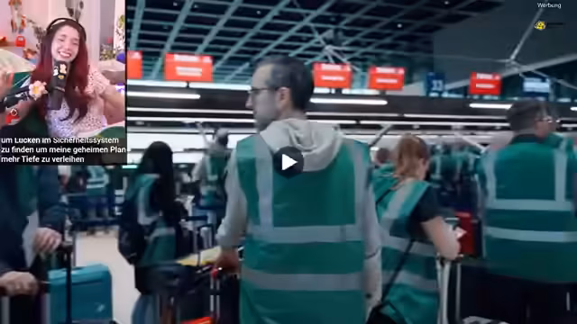 01:21:41Der Streamer berichtet von seiner Erfahrung als Testpassagier im neuen Terminal. Es werden verschiedene Rollenspiel-Szenarien beschrieben, wie die Anreise zum Flughafen, der Check-in-Prozess und die Sicherheitskontrolle. Dabei wird erwähnt, dass Freiwillige als Testpersonen anwesend sind, um den Ablauf zu üben. Besonders wird die unangenehme Situation des Anstehs in der Schlange betont. Der Streamer vergleicht diese Erfahrung mit einem Rollenspiel und stellt fest, dass viele Teilnehmer ernsthaft mitspielen und sich wie echte Passagiere verhalten.