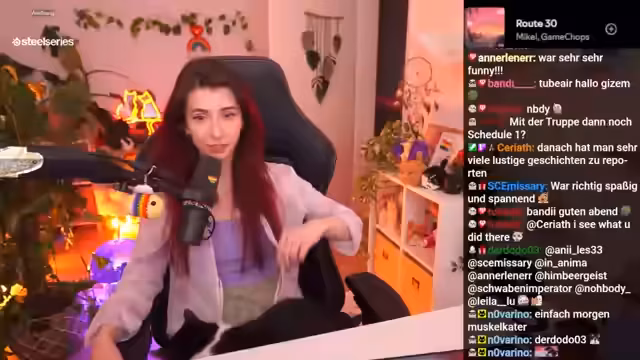 04:12:14Der Streamer gibt Einblicke in das intensive Gaming-Erlebnis während des Spiels von Repo. Er berichtet von einem äußerst angespannten Moment, in dem sein Team fast gestorben wäre, weil er den Truck nicht schnell genug losfahren konnte. Diese Episode habe ihn sehr mitgenommen und er sei nach dem Spiel für mehrere Minuten platt gewesen. Parallel dazu interagiert er mit seiner Katze Luna, die neben ihm schläft und gelegentlich an ihren Krallen knabbert, was der Streamer als süß und entspannend beschreibt.