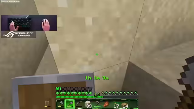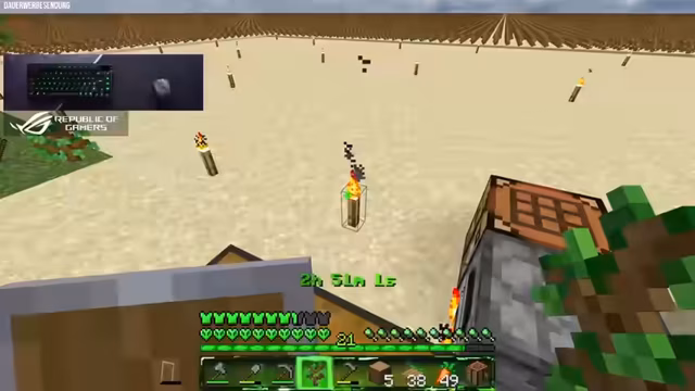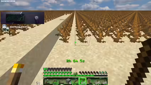 00:38:01Der Streamer präsentiert die besondere Welt, die vollständig aus toten Büschen besteht. Er erklärt das Spielziel: Mit vier Villagern, die unterschiedliche Handelsangebote haben, muss man Ressourcen sammeln und aufleveln. Die Dead Bushes liefern Sticks, die gegen Logs eingetauscht werden können, um so schrittweise bessere Materialien zu erhalten. Das Ganze geschieht im Hardcore-Modus, bei dem bei Tod das Spiel vorbei ist.
