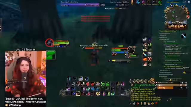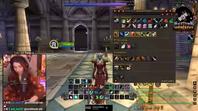01:50:07Ein Privatproblem des Streamers, seine Katze Luna, die sich unaufhörlich auf seine Tastatur legt, wird zum wiederholten Thema und unterbricht den Spielfluss. Gleichzeitig wird das Inventar intensiv sortiert und gesäubert, um Platz für neuen Loot zu schaffen. Besonders bei Heiler-Rüstung wird der Item-Level und die Verteilung von Statistiken wie Intelligenz und Willenskraft kritisch bewertet. Die Herausforderungen des automatischen Lootens werden diskutiert, da der Streamer es vorzieht, jeden Gegenstand manuell zu prüfen.