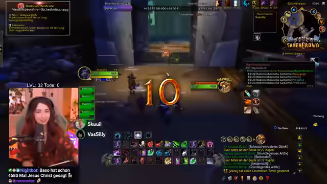 04:58:45Der Streamer plant den Kauf von Mounts für Level 40 und sammelt daher Gold. Währenddessen wird die Route nach Booty Bay als geiler Level-Check beschrieben, da die Gegner von Totenköpfen zu roten wechseln. Gleichzeitig werden die Herausforderungen beim Leveln thematisiert, insbesondere bei der Nutzung von Rested XP, die zu unerwarteten Teleportationen führen kann. Auch die knappe Inventarplatzproblematik wird angesprochen, die Entscheidungen über den Verkauf von Gegenständen erforderlich macht.