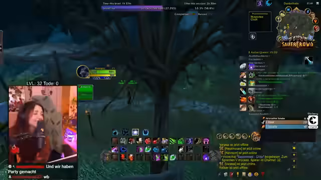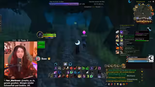 11:46:51Nachdem die Köpfe der Murlocs erfolgreich eingesammelt wurden, fliegt das Duo nach Menezil, um die dortigen Quests abzugeben. Das erfolgreiche Abgeben der Quests führt zu einem Level-Up für beide Spieler. Dies befeuert die Vorfreude auf das Erreichen von Level 40. Anschließend nehmen sie eine neue Quest an, den „Verschollenen Diplomaten“. Diese Mission erfordert das Töten eines unsichtbaren Gegners, was als nervige Herausforderung eingestuft wird. Die Müdigkeit macht sich bemerkbar, als der Streamer vergisst, den Quest-Timer zu beachten und sich zunächst verwirrt zeigt.