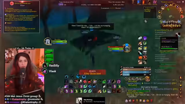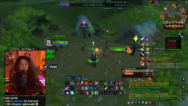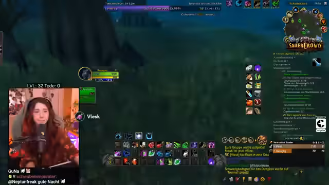 01:16:02Stream-Start im Sumpfland mit dem Ziel, die Levelunterschiede zur Gruppe zu minimieren. Nachdem einige Prequests der Region erledigt wurden, steht der Kampf gegen die dunklen Eisenzwerge an, inklusive der Suche nach dem Anführer Balgaras, der an einem der beiden Dörfer spawnen kann. Nebenbei werden die Ressourcen Wollstoff und Leinstoff für spätere Schneiderquests gesammelt und im Team für das gruppenbasierte Leveling strategisch verteilt. Der Fokus liegt auf dem Vorankommen und der Anpassung an die Gruppendynamik im Early Game.