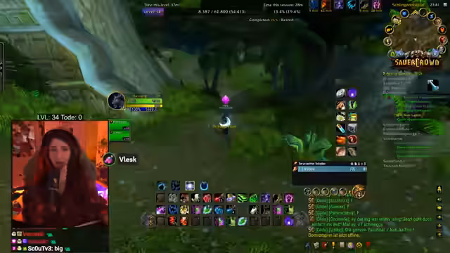 00:37:26Es stellt sich heraus, dass Flesk bereits eine erfahrene Gruppe für den Dungeon Gnomerigan zusammengestellt hat, was den Streamer erleichtert. Er fragt im Chat nach, ob jemand einen Flitz-Diestel-Kräuter für einen Tranz hat, da er ihn für eine Quest braucht. Technisch wechselt er sein Headset, um Hintergrundgeräusche zu reduzieren und bittet die Zuschauer, ihm mitzuteilen, wenn etwas an dem Sound nicht stimmt. Im Chat wird auch über die Streamzeiten im Januar gesprochen, in denen traditionell am meisten gestreamt wird, was der Streamer auf die kalte Jahreszeit zurückführt.