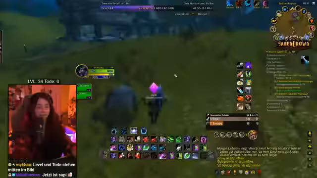00:20:41Zwischen den Spielphasen unterhält sich der Streamer über seine Katze Luni, die in einer Hängematte schläft und das Stream-Bild verschönert. Er erzählt auch von der Katze Ferox, die auf einer Kratzpappe schlief. Er spricht über den weiteren Plan für den Stream: um 17 Uhr muss er die Hochzeit von Mauki und Nagura besuchen und um 18 Uhr die Katzen füttern. Dazwischen ist ein Gilden-Meeting angesetzt. Auch geht er darauf ein, dass er mit Flesk den Dungeon Gnomerigan spielen möchte, aber befürchtet, dass es für ihn als unerfahrenen Spieler schwierig sein könnte, wenn sie nicht stark genug überlevelt sind.