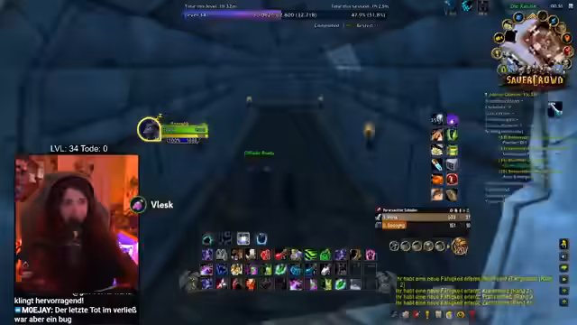 09:04:23Ein plötzlicher PC-Freeze legt den Stream lahm. Nur das Spiel World of Warcraft ist noch lauffähig, während andere Anwendungen wie OBS und einfrieren. Der Streamer kann zwar noch mit der Maus im Spiel agieren, aber der Mauszeiger ist nicht mehr sichtbar. Nachdem der Chat die Tastenkombination Strg + Umschalt + Windows + B vorschlägt, die den Grafiktreiber resettet, funktioniert alles wieder.
