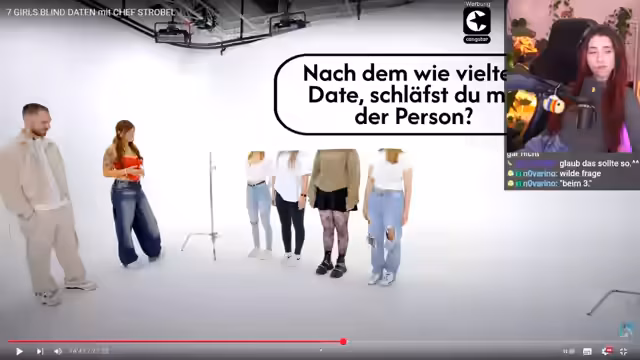 01:28:20Nachdem der Streamer für kurze Zeit den Stream verlässt, kehrt er zurück und beschäftigt sich mit dem Gedanken, ein neues Dating-Format ausfindig zu machen. Er erwähnt "First Dates" und ein mögliches Format namens "Date or fake". Er teilt seine persönliche Streaming-Routine mit und betont, dass er hauptsächlich YouTube im Stream und nicht privat konsumiert. Schließlich entscheidet er sich, eine Folge von "Seven Girls Blinddaten mit Chef Strobel" anzuschauen, die er als "quirky" und unterhaltsam beschreibt, und verspricht den Zuschauern, eine spannende Erfahrung zu liefern.