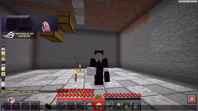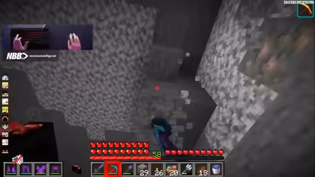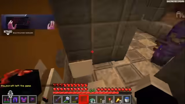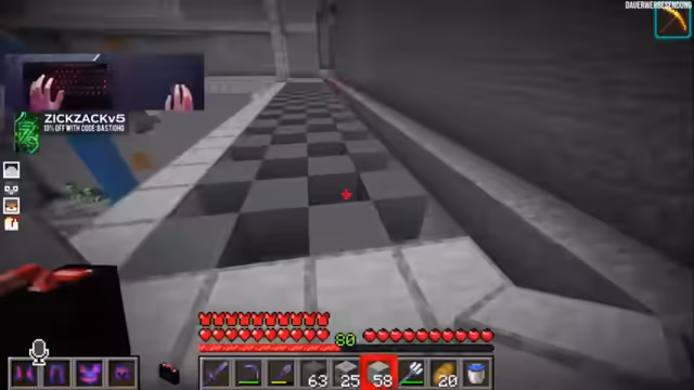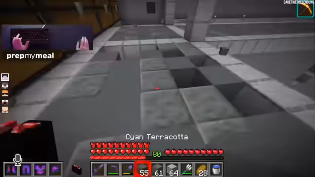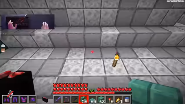 09:40:18Nach der turbulenten Runde konzentriert sich der Streamer wieder auf sein Bauprojekt, eine Kanalisation. Er testet verschiedene Materialien wie Cyan Terracotta und Smoothstone für den Boden, um ein realistisches, industrielles Design zu erzielen. Gleichzeitig überlegt er, ein Labyrinth zu bauen, das von der Kanalisation aus zugänglich ist. Nebenbei tauchen wiederkehrende Sicherheitswarnungen für den Containerbereich auf. Der Streamer taucht kurz in den Nether ein, inspiriert von einem neuen Video, und klaut dabei Blöcke und Farbstoff für sein Projekt.