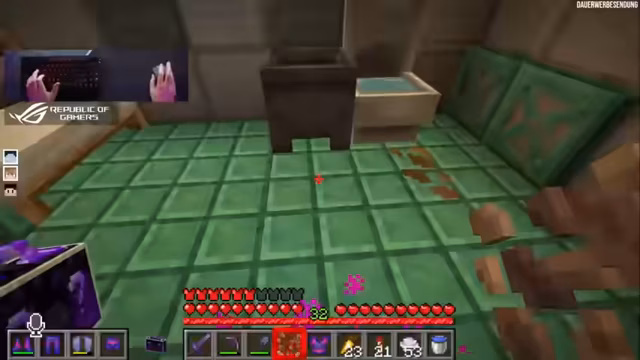 02:30:37Vini beginnt den Escape Room und zählt bis zehn, bevor er loslegt. Es wird noch einmal bestätigt, dass nur Instamine-Blöcke (außer Lichtquellen) abgebaut werden dürfen und alle erhaltenen Items verwendet werden können. Der Streamer wettet auf eine schnelle Zeit für Vini, möglicherweise unter 30 Minuten. Vini findet in seiner Zelle Barrels, Yellow Dye, Rotten Flesh, Betten und Trapdoors. Er entdeckt einen Crafting Table und überlegt, Glas zu schmelzen, da er Leaflitter als Brennstoff hat. Er bemerkt einen Piston, der sich zweimal aktiviert, und findet eine neue Zelle mit Leaves. Vini entdeckt Skulk-Sensoren und Pottery Shards. Er findet ein Minecart, mit dem er nicht interagieren kann, und ein zweites Gold Nugget. Vini schmilzt Glas und überlegt, wie er den Skulk-Sensor aktivieren kann. Er bemerkt tropfendes Wasser und überlegt, ob er einen Wassereimer benötigt. Der Piston öffnet sich, und Vini gelangt in einen neuen Bereich mit einem Minecart with Chest, in dem sich drei Glasflaschen befinden. Er überlegt, wie er Wasser aus dem Klo nehmen kann, um die Flaschen zu füllen.