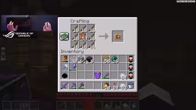 02:38:56Vini füllt einen Kessel mit Wasser und überlegt, wie der Skulk-Sensor aktiviert werden kann. Er ist unsicher, ob er sich verirrt hat, findet aber seinen Weg. Er entdeckt eine Shalker und ein Item-Frame mit einem White Bundle. Vini überlegt, wie er den Skulk-Sensor auslösen kann, da Trinken und Essen keine Reaktion hervorrufen. Er findet einen Bambus und überlegt, eine Angel zu craften, benötigt dafür aber noch einen String. Er hat bereits zwei Gold Nuggets gefunden. Vini versucht, den Skulk-Sensor durch verschiedene Interaktionen auszulösen, aber ohne Erfolg. Er überlegt, ob die Items Ablenkung sind und versucht, mit dem Rotten Flesh den Sensor zu triggern, was ebenfalls nicht funktioniert. Er vermutet, dass Angeln die Lösung sein könnte, da er eine Angel craften kann, ihm aber ein String fehlt. Er fragt sich, was er mit einem Fisch auf dem Campfire machen könnte, um ein Signal auszulösen. Er überlegt, ob das Campfire einen Sound macht, wenn es brennt, oder ob ein Hopper darunter ist, der Items auffängt.