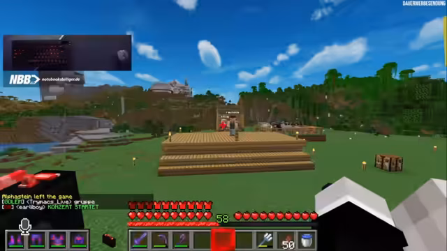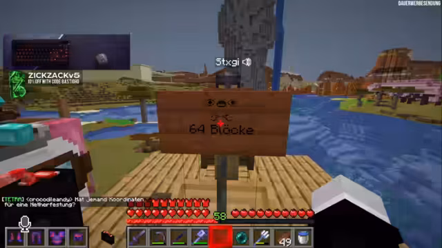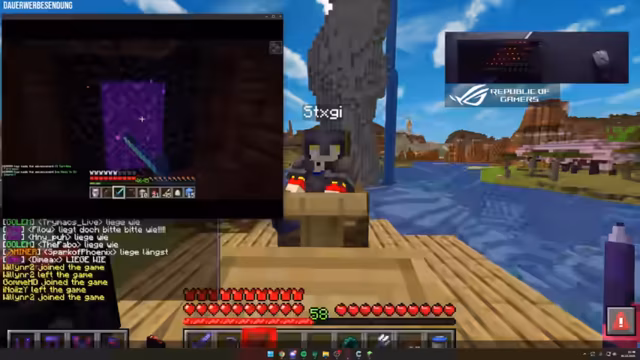 08:09:04Plötzlich treten technische Probleme im Stream auf, die die Kommunikation behindern. Gleichzeitig wird ein Experiment mit Spiegel-Technik in Minecraft gestartet. Der Streamer versucht, einen realistischen Spieleffekt zu erzeugen, indem er bestimmte Blöcke und Techniken verwendet. Er sucht nach der perfekten Position und Beleuchtung, um den Spiegel-Effekt überzeugend darzustellen, was einige Versuche erfordert.