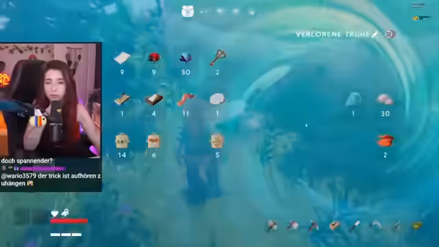 01:44:16Die Streamer beschließen, eine weitere Insel zu erkunden. Sie landen vor einer Höhle und entdecken einen Schlüssel. Die Schmetterlingslampen werden bewundert und die Entwickler werden gebeten, diese kopieren zu dürfen. In der Höhle finden sie einen Salzstein. Die Streamer scherzen über ein geheimes Versteck für dämonische Rituale und Opferlämmer. Sie finden Windsteinkristalle und Würmer. Eine Zuschauerin fragt, ob das Spiel Kult of the Lamp gespielt wurde. Die Streamer entdecken ein Kreuz, das eine Stelle markiert, und finden einen Wasseropal. Sie sprechen über die Beschichtungsstation und den Pinsel, mit dem man kranke Tiere heilen kann. Es wird schwarzer Tee mit Milch getrunken und Snacks gegessen.