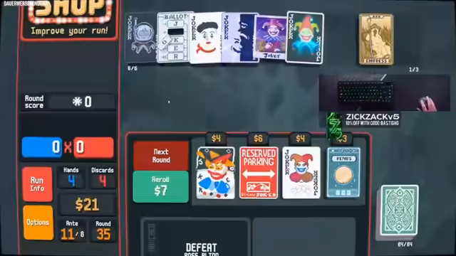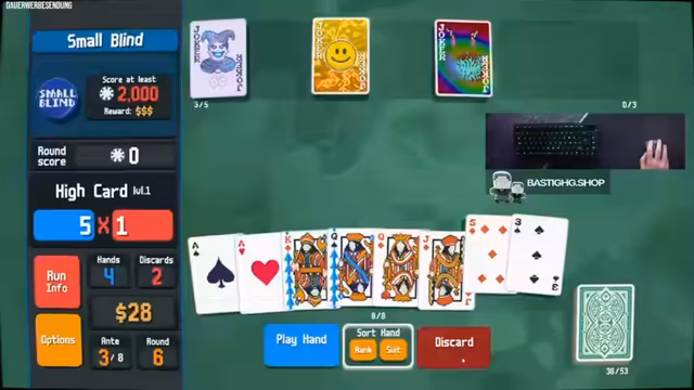 03:30:13Die Runden in Balatro werden fortgesetzt und es entwickeln sich komplexere Taktiken. Der Streamer konzentriert sich auf das Spielen von Face Cards und kombiniert verschiedene Joker wie Hologramm und Polychrome, um hohe Multiplikatoren zu erzeugen. Dabei werden auch Strategien wie das Hinzufügen von Stilkarten analysiert, um den Highscore zu maximieren und neue Decks freizuschalten.