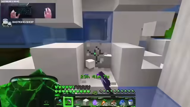 00:43:25Bei der Erkundung der Welt stößt der Streamer unerwartet auf ein Endportal im untersten Layer. Obwohl er eigentlich eine Eisenfarm bauen wollte, konzentriert er sich nun darauf, das Portal mit den sieben benötigten Enderaugen zu aktivieren. Diese Entdeckung kommt völlig überraschend und lässt das Projekt eine unerwartete Wendung nehmen.