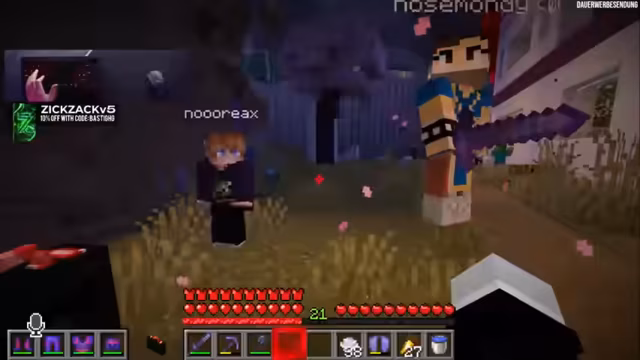 00:12:55Der Streamer entschuldigt sich für den späten Video-Upload am Vortag und verspricht, dass das heutige Video früher erscheinen wird. Er weist die Zuschauer darauf hin, das gestrige Video anzusehen, falls sie es noch nicht getan haben. Während einer kurzen Verwirrung stellt er fest, dass er sich noch auf dem falschen Account befindet, bevor er zum richtigen wechselt. Er bestätigt, dass er weiterhin im Besitz des Koffers und des Dracheneis ist, den zwei wertvollsten Items auf dem Server. Diese Items sollen in seinem Besitz bleiben, auch wenn er dafür in der Kanalisation verweilen muss, die sich mittlerweile zu einer großen Geheimbasis entwickelt hat.