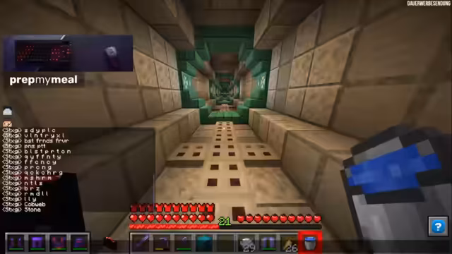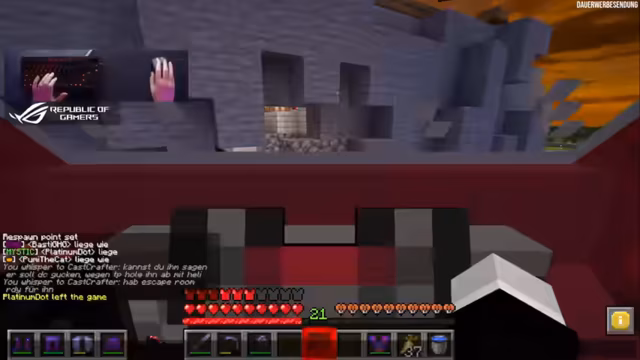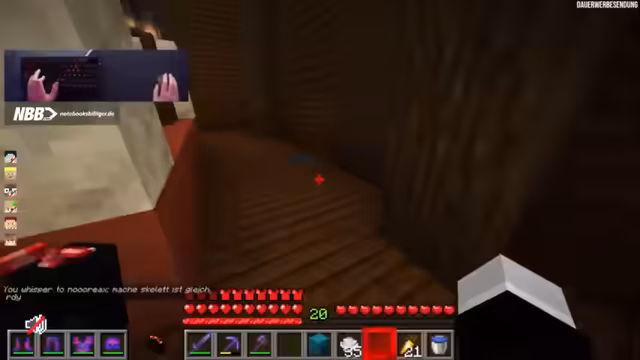 09:28:00Während des Gesprächs kommt es zu einem unerwarteten Angriff eines Skeletts, bei dem der Streamer fast stirbt, obwohl er Netherite-Ausrüstung trägt. Es wird der Tipp gegeben, Elytra und Brustplatte in der Hotbar zu haben, um schnell wechseln zu können. Technische Probleme mit PayPal werden erwähnt, da das Konto erneut gesperrt wurde. Es wird über die neueste Version des GHG-Packs und notwendige Mods für den Helikopter im Spiel gesprochen. Die Kanalisation wird schnell ausgekleidet, und es wird über die Möglichkeit eines zweiten Escape Rooms oder weiterer Rätsel nachgedacht.
