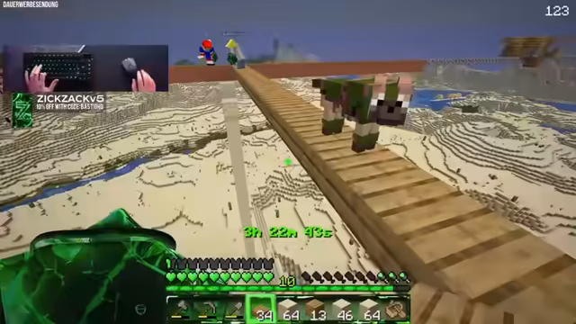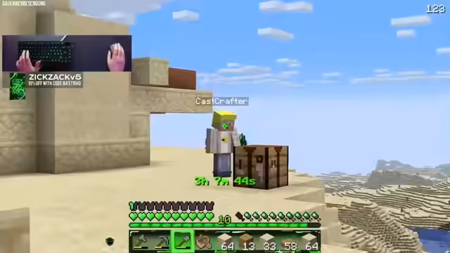 02:46:49Der Stream beginnt mit der Konfrontation mit einem Creeper und einem Baby-Zombie in der Nähe des Dorfes. Die Spieler sind vorsichtig und versuchen, sich mit Treppe und Blöcken zu schützen, während sie aktiv nach dem Creeper suchen. Es kommt zu gefährlichen Situationen, bei denen die Spieler knapp einer Explosion oder dem Angriff eines Monsters entgehen. Das Gameplay konzentriert sich auf die Jagd nach dem Creeper und das Verhindern von Schäden am eigenen Dorf, was zu aufregenden und knappen Momenten führt, bei denen die Spieler ihr Überleben sichern müssen.