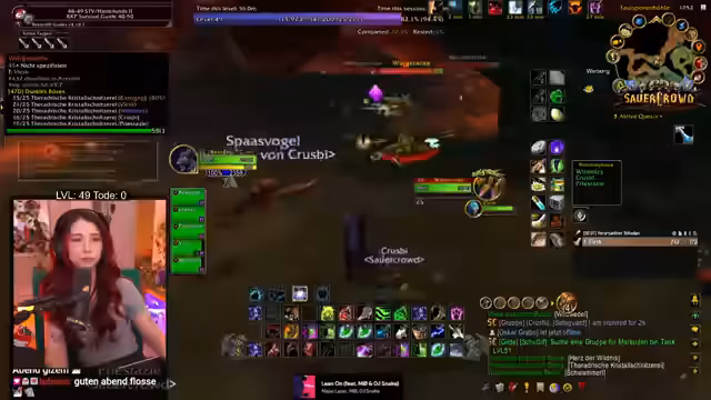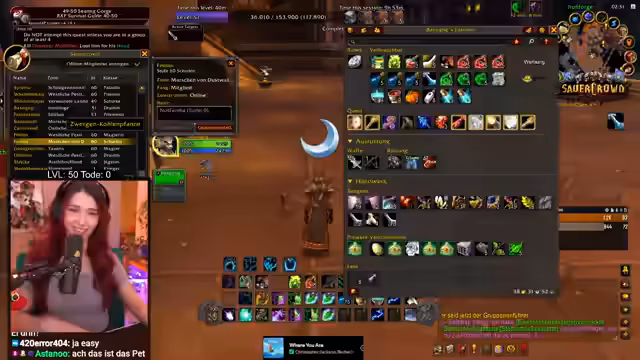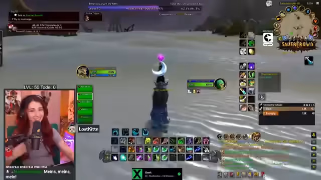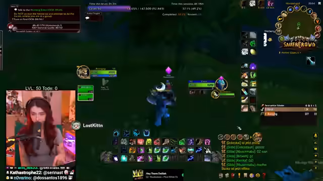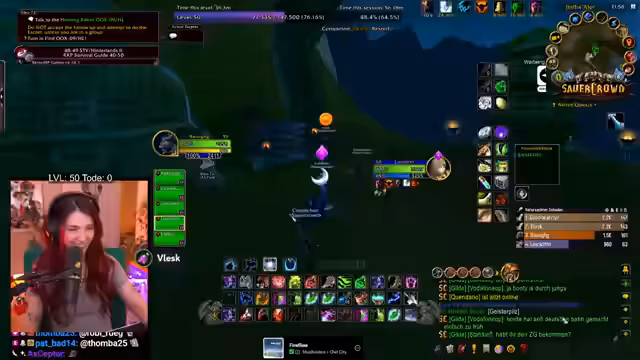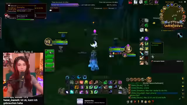 07:59:08Der Fokus liegt auf dem Erreichen von Level 50, wobei der Streamer die 'Rested XP'-Funktion nutzt, um effizienter zu leveln. Es gibt eine kurze Pause bei der Nutzung der Funktion, da eine Abgabe fehlt. Das Thema 'Phasing' oder 'Layering' wird erneut angesprochen, da es auf verschiedenen Layern unterschiedliche Händler und Gegenstände gibt. Der Streamer betont, wie wichtig es ist, auf den Chat zu achten, um wichtige Informationen nicht zu verpassen, was zu einem kurzen Verwirrungszustand führt.